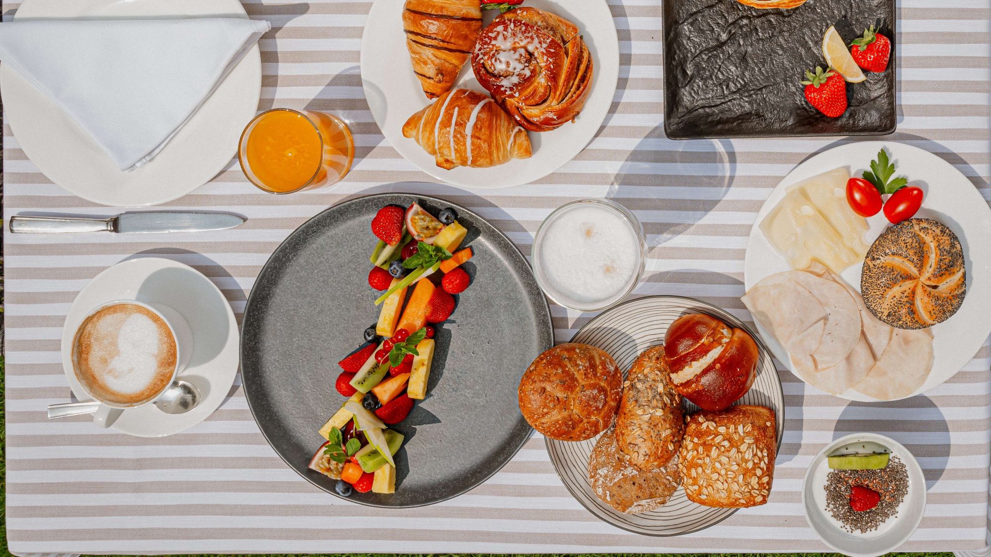 Our selection of food and drinks reflects the diversity of nature: homemade jams, freshly squeezed juices and bread from Merano's Schmidt bakery.