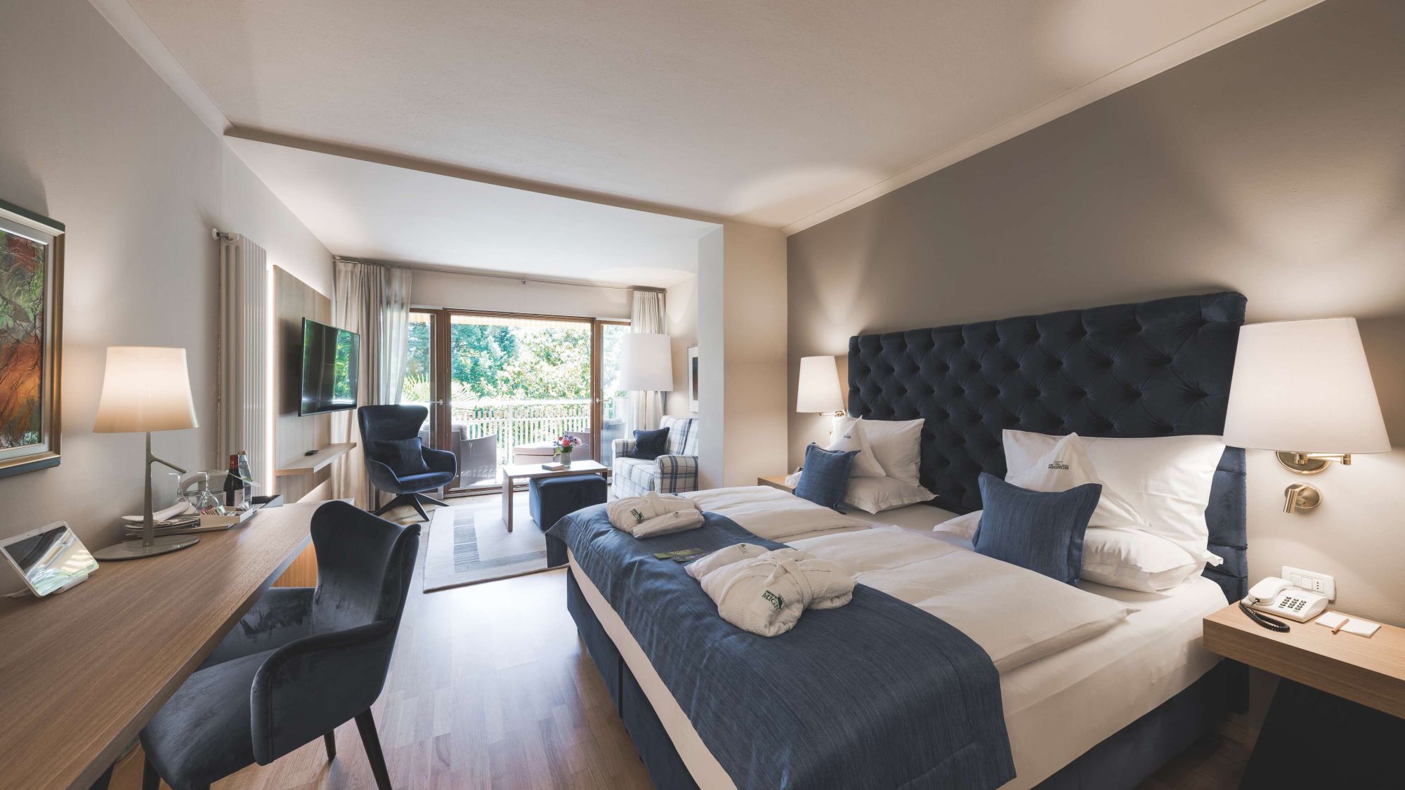 Our rooms and suites combine stylish design with thoughtful details – from the fine L'Occitane toiletries in the bathroom, a kettle with a selection of exquisite teas, to a personal hiking backpack for your excursions. Wi-Fi, air conditioning, minibar, and a fresh floral greeting ensure even greater comfort.