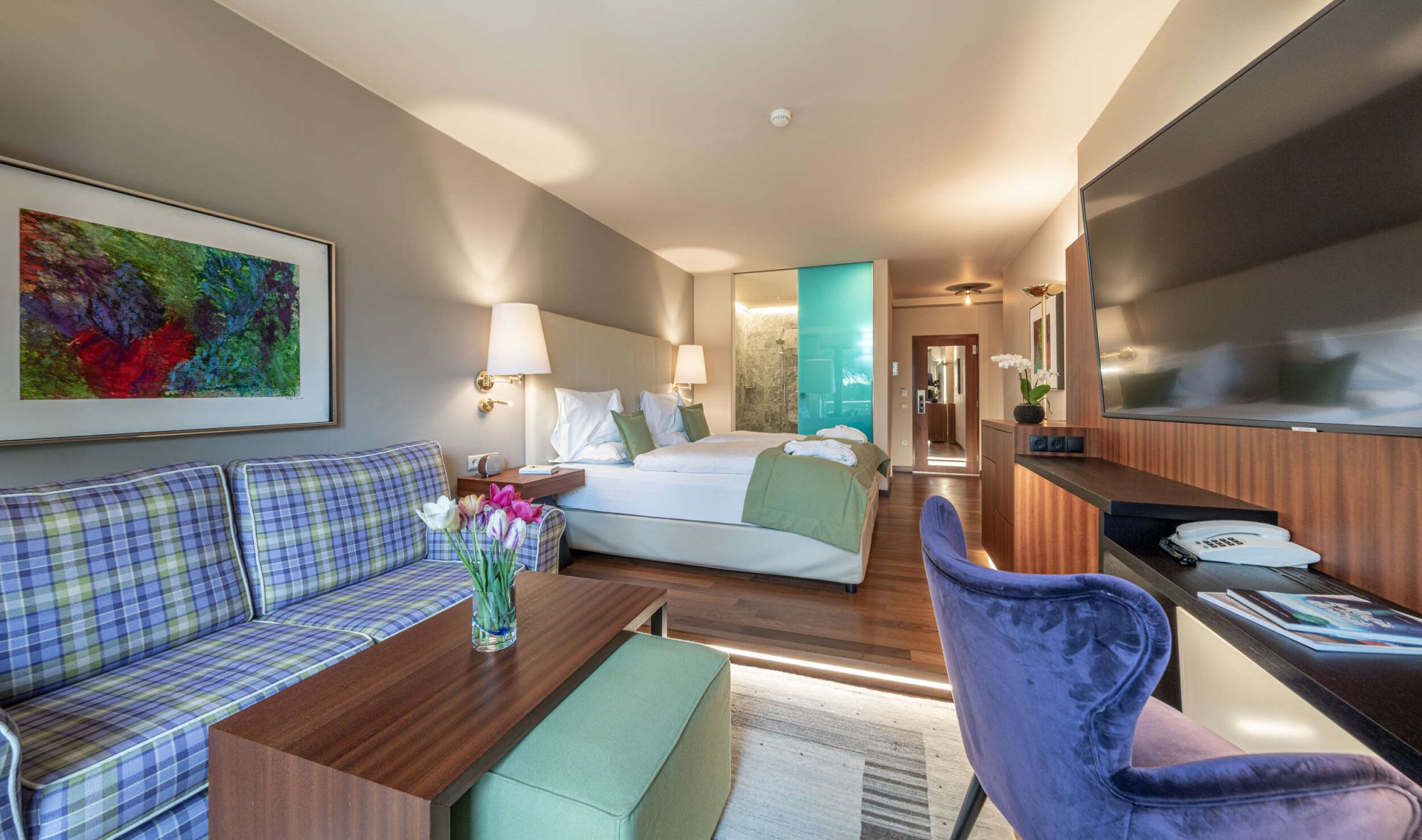 Un po' di più è tutto ciò di cui avete bisogno. Più spazio, più sole, più pace e tranquillità. Junior suite soleggiata con salotto-letto, accogliente zona giorno e vista sul parco, splendido balcone e ampio bagno con doppio lavabo.